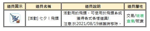另外每日登入60分鐘,還可以獲得2個[活動] 七夕!飛鏢唷!
