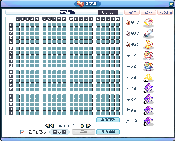 1.注意: 第1名~第3名的獎項,為上方表單對應道具隨機擇一出現在不同分流的戳戳樂。
