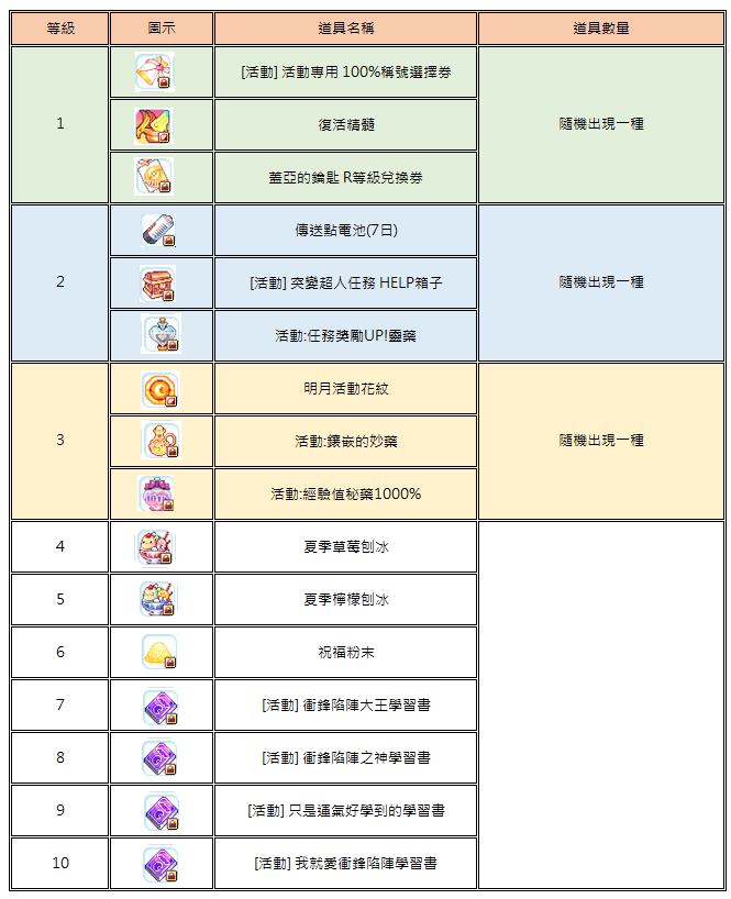 3.因隨機出現關係, 每個分流的獎勵清單非皆相同唷!!