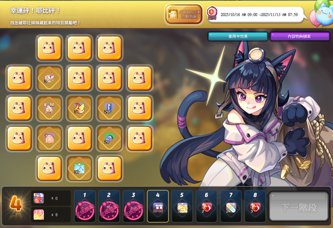 ▷ 在隱藏獎勵中尋找特殊獎勵,以前往下一階段的活動系統。