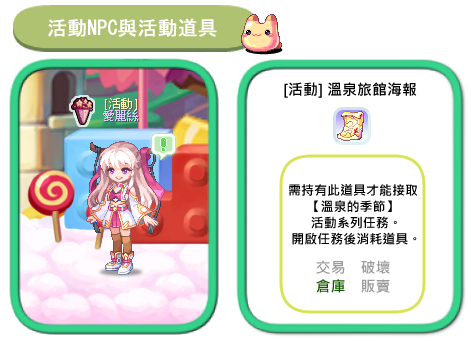 ※ 任務開啟道具【[活動] 溫泉旅館海報】會在任務開啟時被消耗,