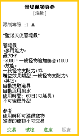 | 傷害字型外觀裝扮票券 |