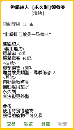 熊貓超人 [永久制]領養券 |
