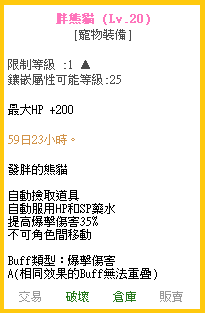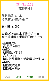 注意※道具不可交易。可存倉、破壞。