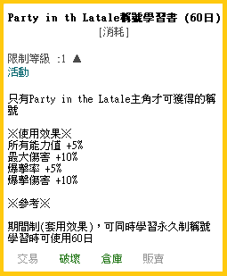 ►Party in th Latale稱號學習書 (60日)