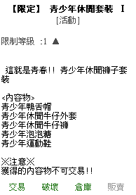 ►【限定】 青少年休閒套裝 Ⅰ