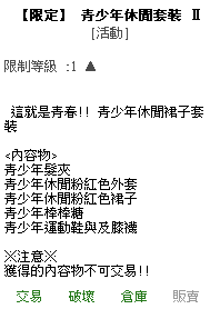 【限定】 青少年休閒套裝 Ⅱ |