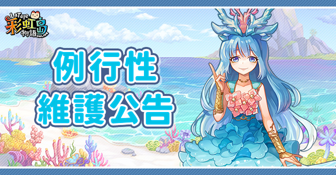 『彩虹島物語Online』將於06月27日(四) 08:00 ~ 16:00進行例行性維護作業,